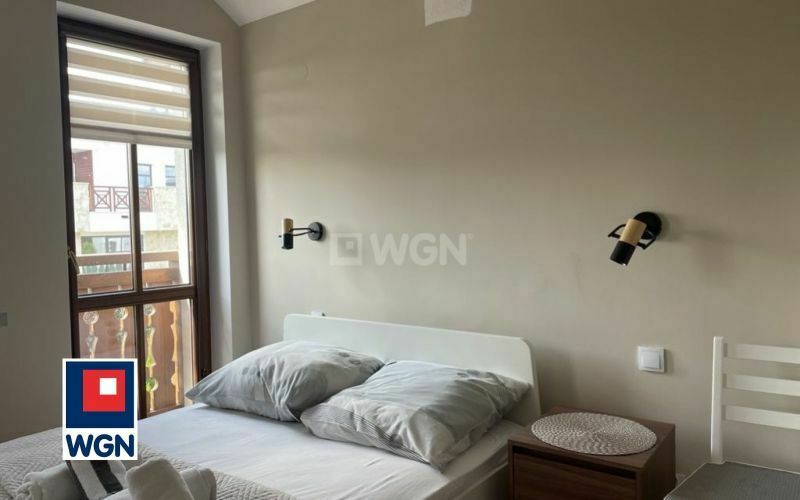 Do apartamentu przynależy duży ogród o powierzchni 120 m2, który stanowi doskonałą przestrzeń do wypoczynku na świeżym powietrzu.
