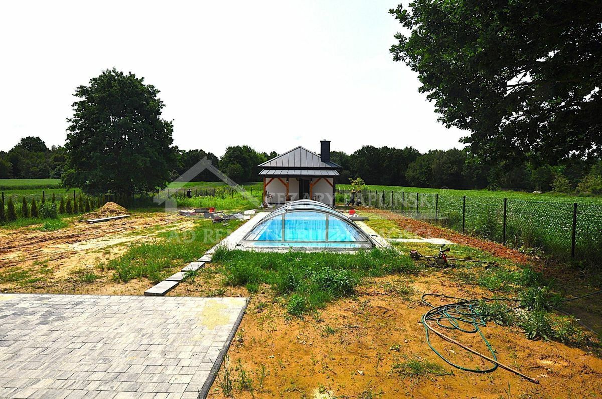 Zapraszamy do zapoznania się z unikalną ofertą nieruchomości w pobliżu Nałęczowa - domu z basenem oraz komfortowego domku dla gości, usytuowanych na pięknej działce o powierzchni 2262 m². Ta wyjątkowa propozycja łączy kameralny klimat z funkcjonalnością i nowoczesnym designem.Na przestronnej działce o długości 108 m czeka na Państwa przestronny dom. Dom ten to parterowy budynek inspirowany projektem "Jedlina 2" od KB Projekt z Krakowa, obejmujący otwartą kuchnię, jedną łazienkę oraz aż sześć pokoi. Dodatkowo, w ramach adaptacji, pierwotny taras z tyłu domu został przekształcony na wygodny pokój, co zwiększa funkcjonalność przestrzeni.