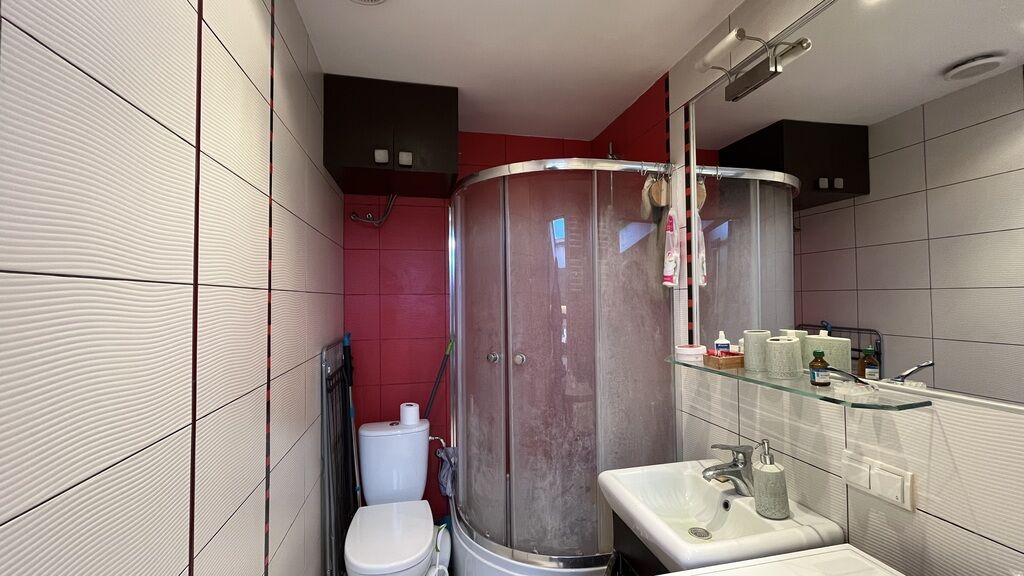 w aneksie kuchennym szafki pod wymiar, w łazience kabina prysznicowa