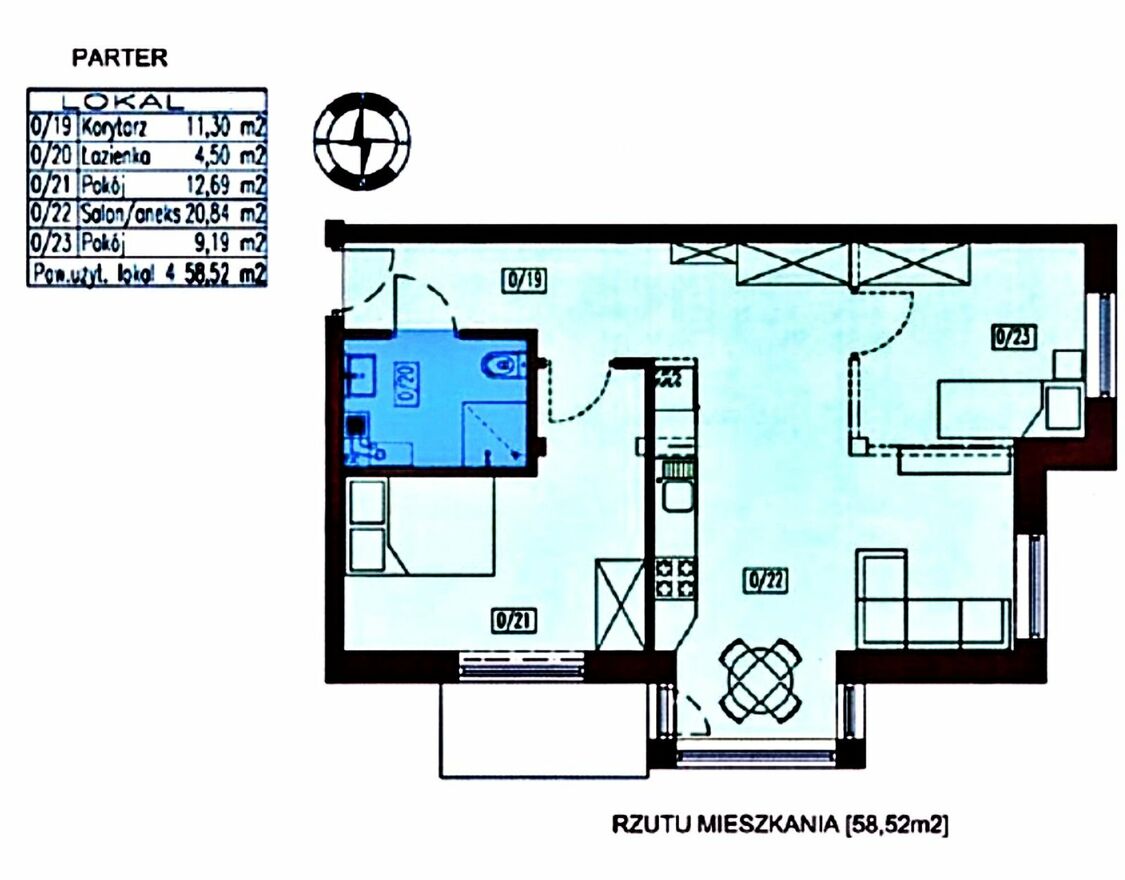 Mieszaknie o pow. 58,52 m2 skłąda się z: